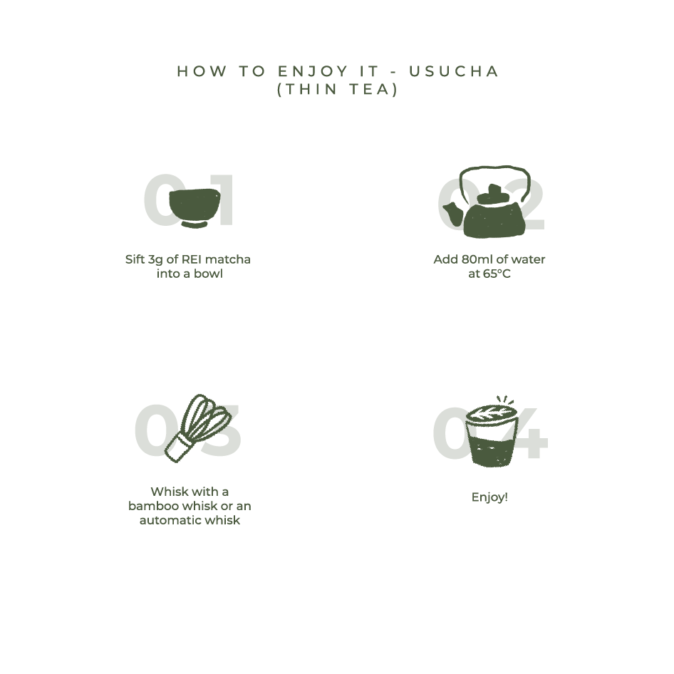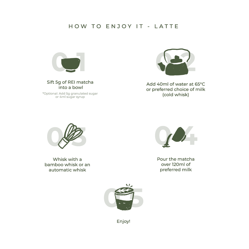 REI Matcha is a Malaysian matcha house dedicated to redefining how matcha is experienced. Rooted in Japan’s finest farms, we invite both newcomers and connoisseurs to discover the true taste and benefits of authentic matcha. We honor the spirit of Japanese ceremony and ritual while blending accessibility, creativity, and play.